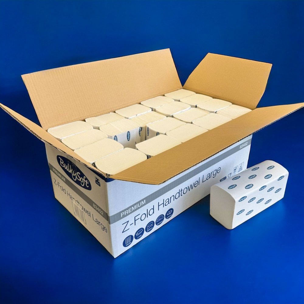 - CHSA-approved paper hand towels in crisp white ‘virgin tissue’