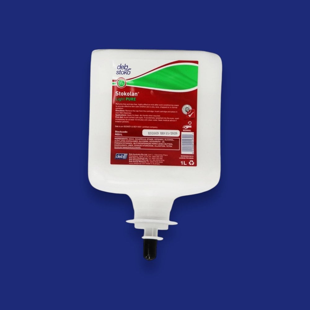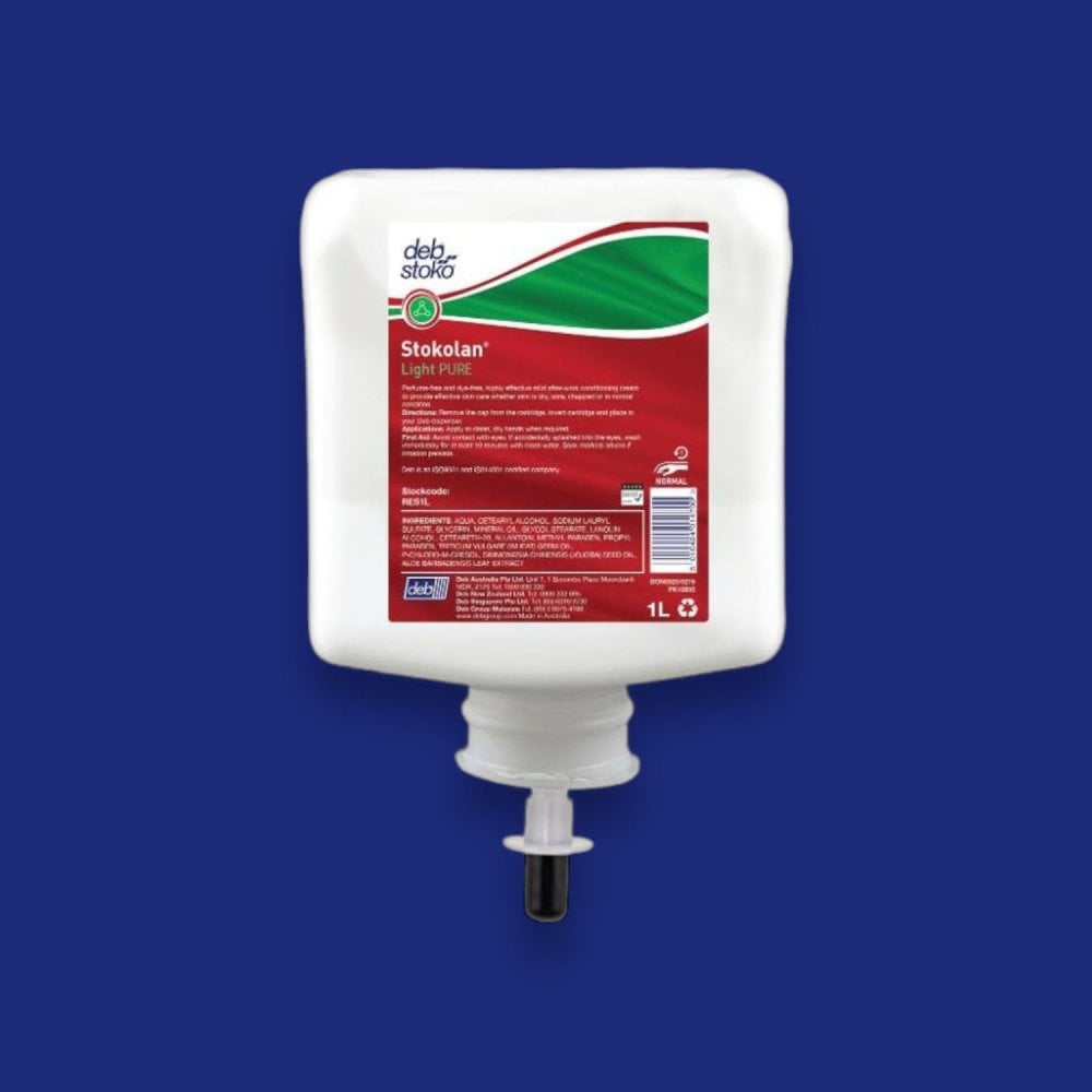 Deb brand Pure Restore after-work skin cream is a fantastic quality hand conditioner that helps replace skin’s natural moisture, greatly reducing dryness, irritation and soreness after work and intensive washing.
