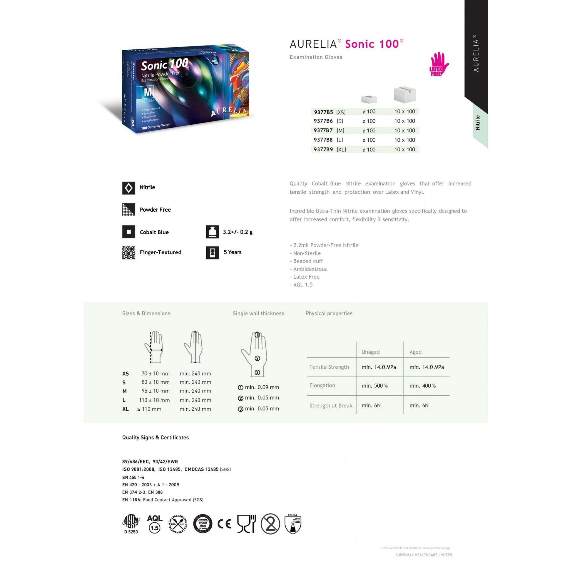 Aurelia Gloves - Sonic 100 Cobalt Blue Nitrile Gloves - Powder Free