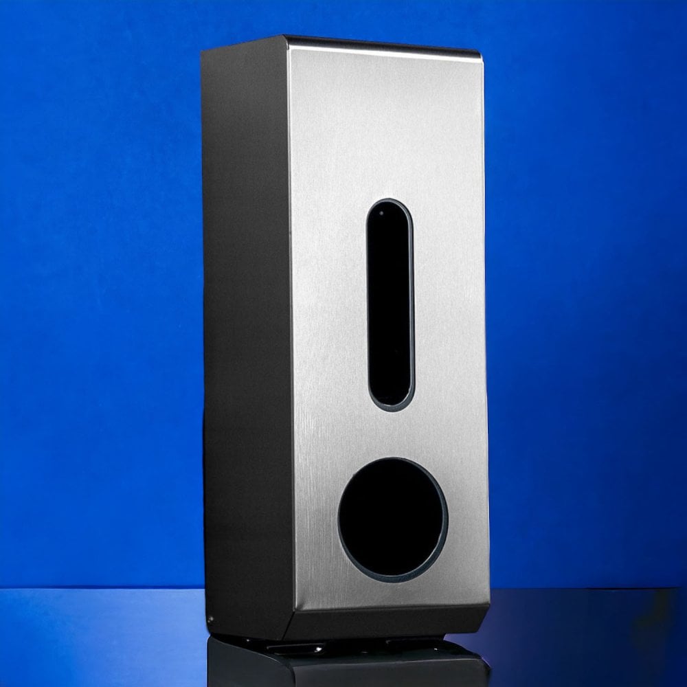 An innovative design enabling storage of up to three domestic-size toilet rolls. Fitted with a solid lock and finished in high quality brushed stainless steel, this is a hardwearing product ideal for high traffic areas.