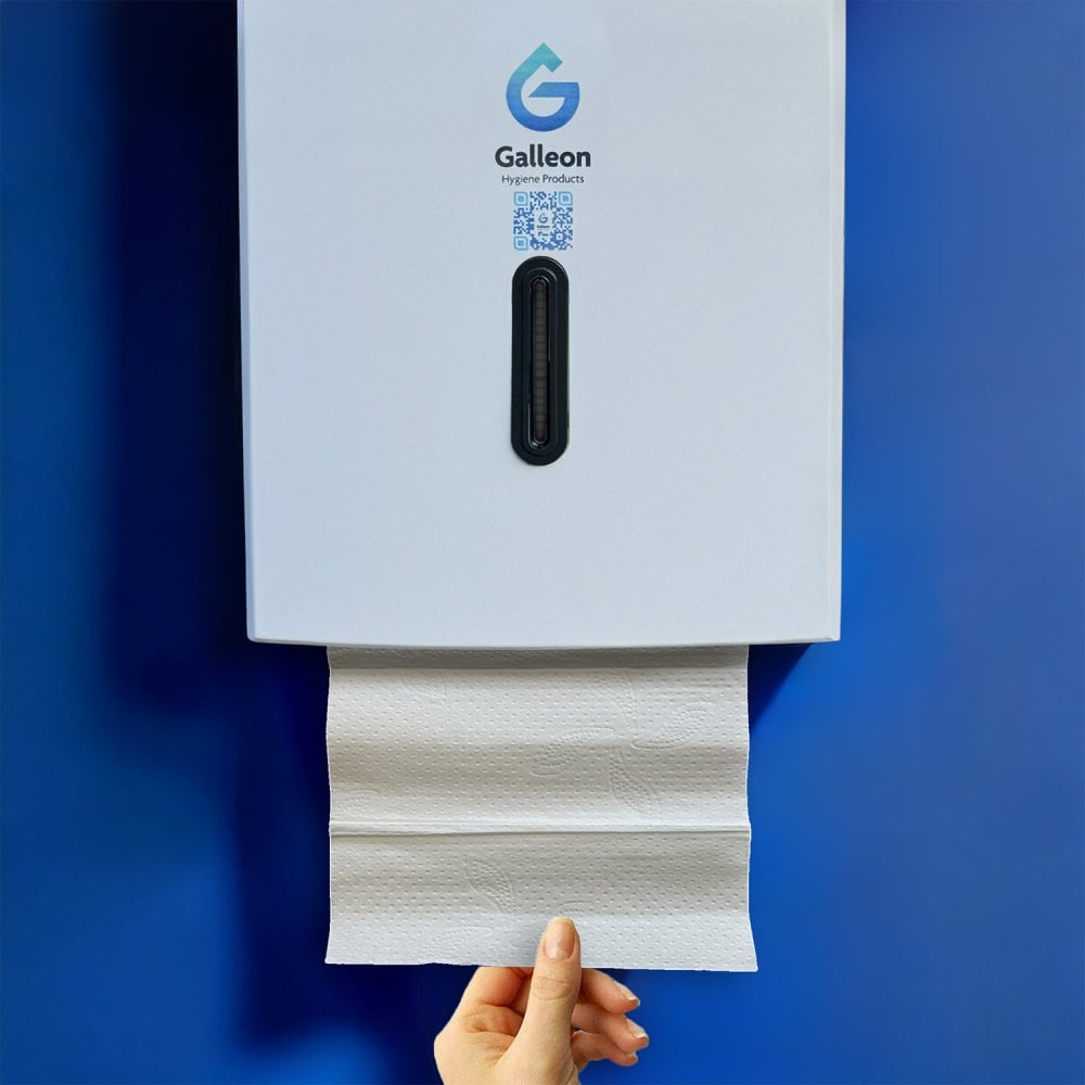 Alternatively, this towel can also be dispensed using the Galleon Halo Hand Towel Dispenser